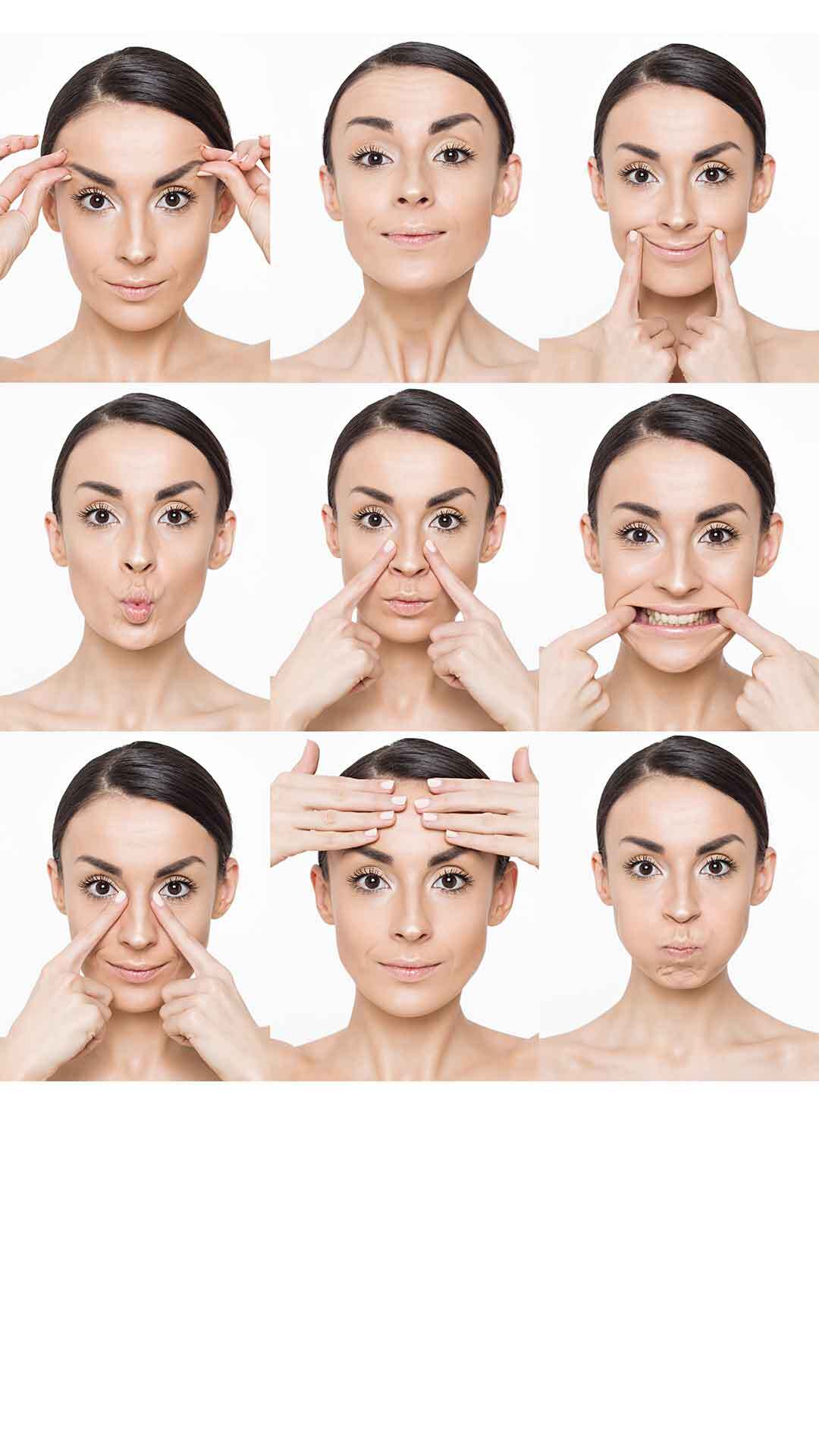 Place your index fingers at the outer corners of your eyes. Pull gently towards the temples; repeat 15 times.